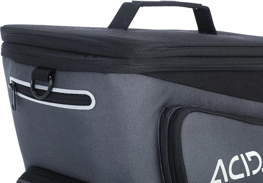 Beaucoup d’espace pour vos bagages – grâce à des poches latérales enroulables et un compartiment principal extensible, vous décidez du volume. Le sac à vélo ACID TRUNK 8+7 RILink est compatible avec tous les transporteurs ACID et CUBE, dispose d’une bandoulière réglable, d’éléments réfléchissants et d’une poche en filet. Et bien sûr, grâce à la housse de pluie pratique, il peut également être utilisé par mauvais temps.