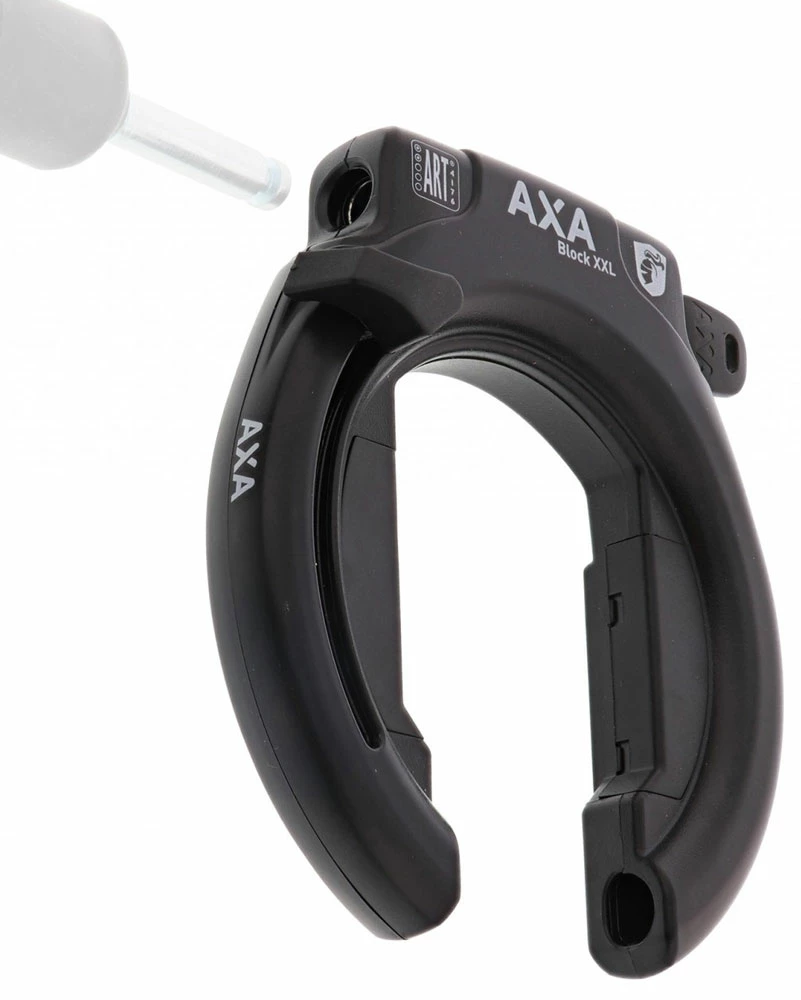 L’antivol de cadre Axa Block XXL verrouille désormais ton vélo de ville, de randonnée ou de trekking à gros pneus directement sur le cadre, d’un simple mouvement de la main, pour une utilisation quotidienne. L’antivol de cadre de haute qualité avec une ouverture extra large de plus de 60 mm, convient également pour des largeurs de pneus jusqu’à 2,5″.