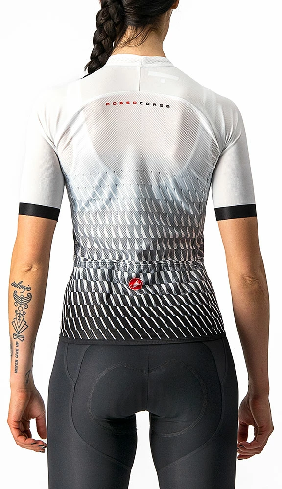 100% polyester multidenier fabric. The 3D weave reduces contact area with your skin to provide excellent wicking. It dries in the blink of an eye and in fact is the ideal fabric for hot-weather racing.