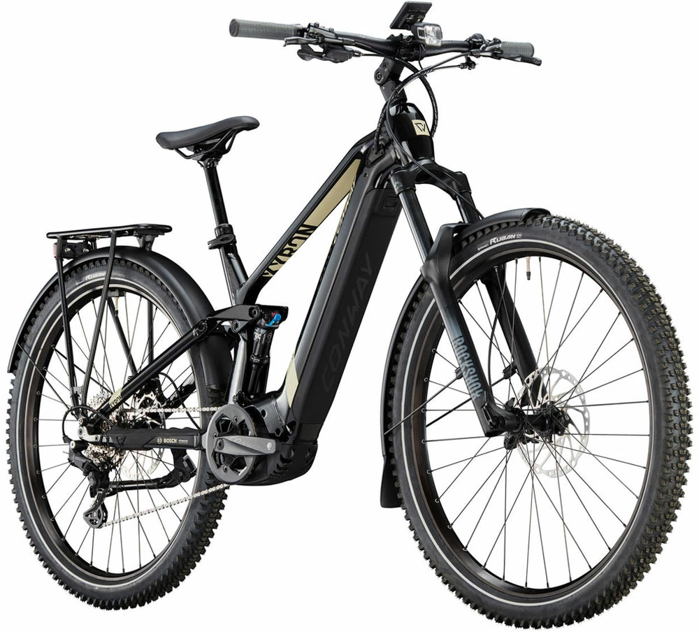 The Conway Xyron SUV 2.9 is probably the most comfortable and yet most suitable E-MTB for everyday use. Equipped with lights, a rear rack and mudguards, it combines the comfort of an e-fully with the practicality of an urban bike. It impresses with a powerful Bosch Performance CX Gen 4 motor. The 625 Wh battery reliably supplies you with the necessary power so that you can enjoy your time on your bike for even longer.
