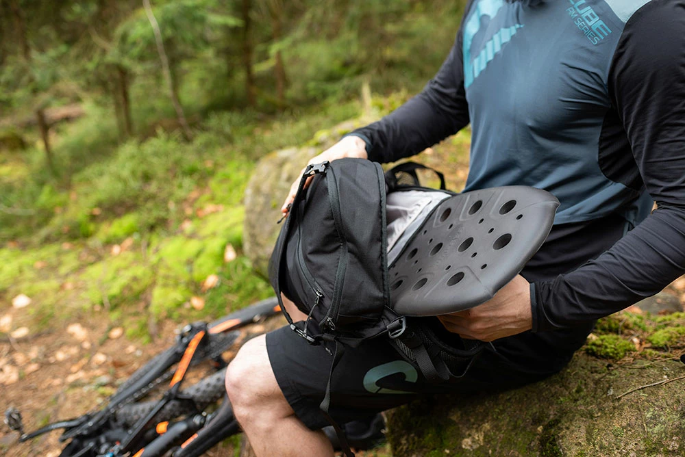 Le sac à dos pour vélo électrique EDGE HYBRID de Cube est polyvalent, offre 20 litres d’espace de rangement et fait tout simplement tout. Il est compatible avec les systèmes d’hydratation et a été équipé de la protection dorsale SAS-Tec SCA 450.