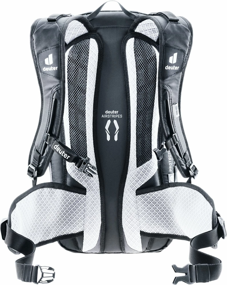 Et bien sûr, il y a la protection dorsale certifiée par le TÜV/GS, facile à enlever et offrant une sécurité maximale en cas de problème. Le dos raccourci spécialement pour les femmes avec le système éprouvé et léger deuter Airstripes permet une excellente ventilation dans le dos.