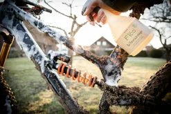 - Vaporiser le vélo, laisser agir le produit pendant 5 à 10 minutes, puis rincer abondamment avec un jet d’eau puissant (pas de haute pression !).