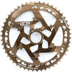 En prime, les pignons Helix R 12s sont rétrocompatibles avec la cassette TRS+ 9-50T et peuvent être utilisés pour mettre à niveau cette cassette. Le grand pignon de 42 à 50 dents proposé ici est deux fois plus durable que les modèles anodisés grâce à sa finition PVD.