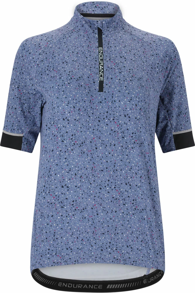 Le maillot de cyclisme chic JETTE pour femmes de la marque danoise ENDURANCE est fabriqué dans un matériau fonctionnel respirant et à séchage rapide, ce qui le rend très agréable à porter à vélo. Ce maillot à manches courtes est idéal pour une randonnée à vélo de course, en VTT ou pour une balade à vélo à la campagne.
