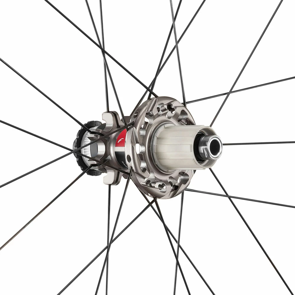Dans le but d’économiser chaque gramme de poids et de choisir les solutions technologiques les plus avancées, le département R&D a développé un moyeu en carbone sans soudure. La fibre sélectionnée est tissée à 90 degrés, pour un meilleur équilibre du couple lors du pédalage.