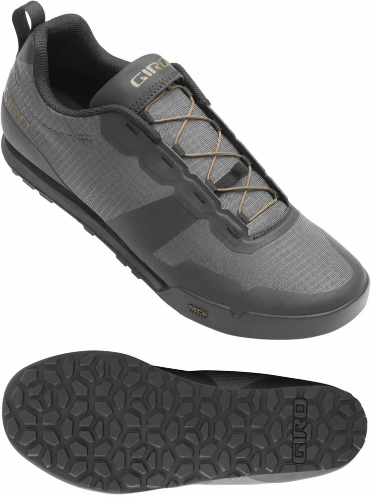 La semelle extérieure en caoutchouc Tack™ s’engage sur les broches des pédales plates et une semelle intermédiaire en EVA à double couche assure le confort en dehors du vélo. Le système de laçage rapide permet d’enfiler et d’enlever rapidement les chaussures et de les adapter facilement à votre pied.