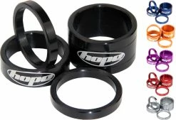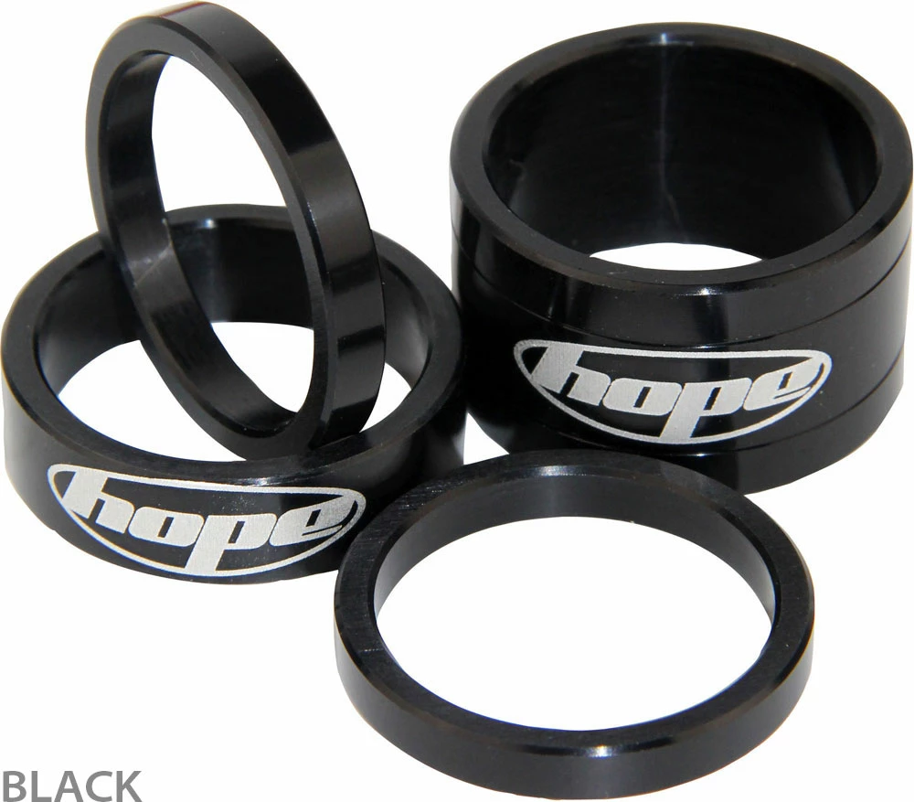 Le set d’entretoises ultraléger “Space Doctor” de Hope, fabriqué en aluminium et portant le logo Hope gravé au laser, comprend trois tailles différentes pour un réglage individuel de la hauteur.