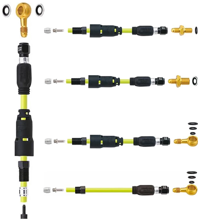 - Chaque kit contient tous les raccords côté levier et côté frein pour un vélo