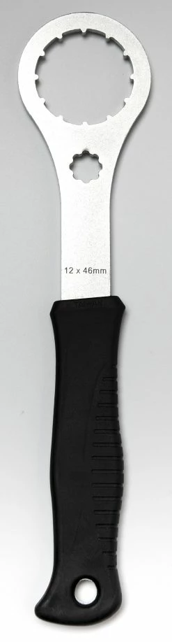 Cette clé à pédalier Katana permet de monter et de démonter facilement de nombreuses cuvettes de pédalier externes, qu’elles proviennent de SRAM, Rotor, Zipp, Race Face ou d’autres fabricants. L’acier trempé de cet outil lui confère une grande durabilité, ce qui en fait un outil idéal pour les ateliers professionnels.