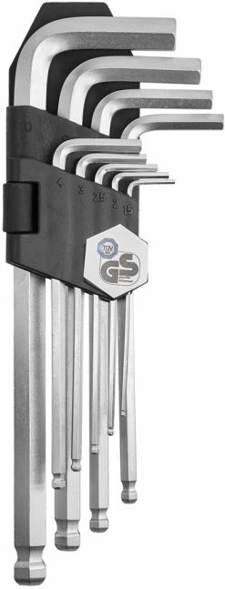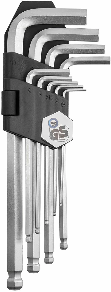 Outil absolument indispensable pour les cyclistes : la clé hexagonale ! Quoi de mieux qu’un set comprenant toutes les tailles courantes pour la réparation ou le réglage ? Le set de neuf pièces garantit un travail sans souci à l’atelier et sur la route. Toutes les tailles importantes sont disponibles dans le support rabattable : en version normale et en version à tête ronde de l’autre côté. Ainsi, même les vis difficiles d’accès n’ont aucune chance.