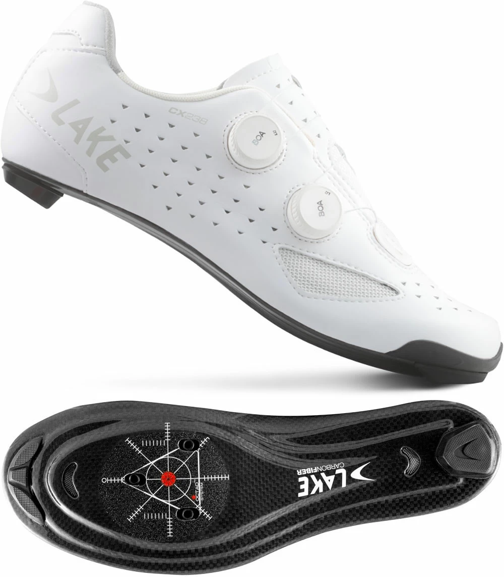 La Lake MX 238 est une chaussure de vélo de course haut de gamme. La tige robuste avec des inserts en cuir Helcor® résistant à l’abrasion épouse parfaitement le pied et offre un maintien sûr grâce à la double fermeture BOA IP1. La semelle ultra-rigide 100% carbone avec bande de roulement en caoutchouc Mountain Race X et forme Competition permet à la chaussure d’être très légère. Cette version X a une coupe légèrement plus large pour les pieds plus larges.