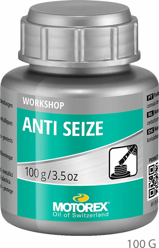 MOTOREX ANTI SEIZE est une pâte de montage spéciale pour les assemblages alu-métal tels que tout ce qui est pressé, les supports en aluminium dans des cadres métalliques, ou encore tous les assemblages vissés.