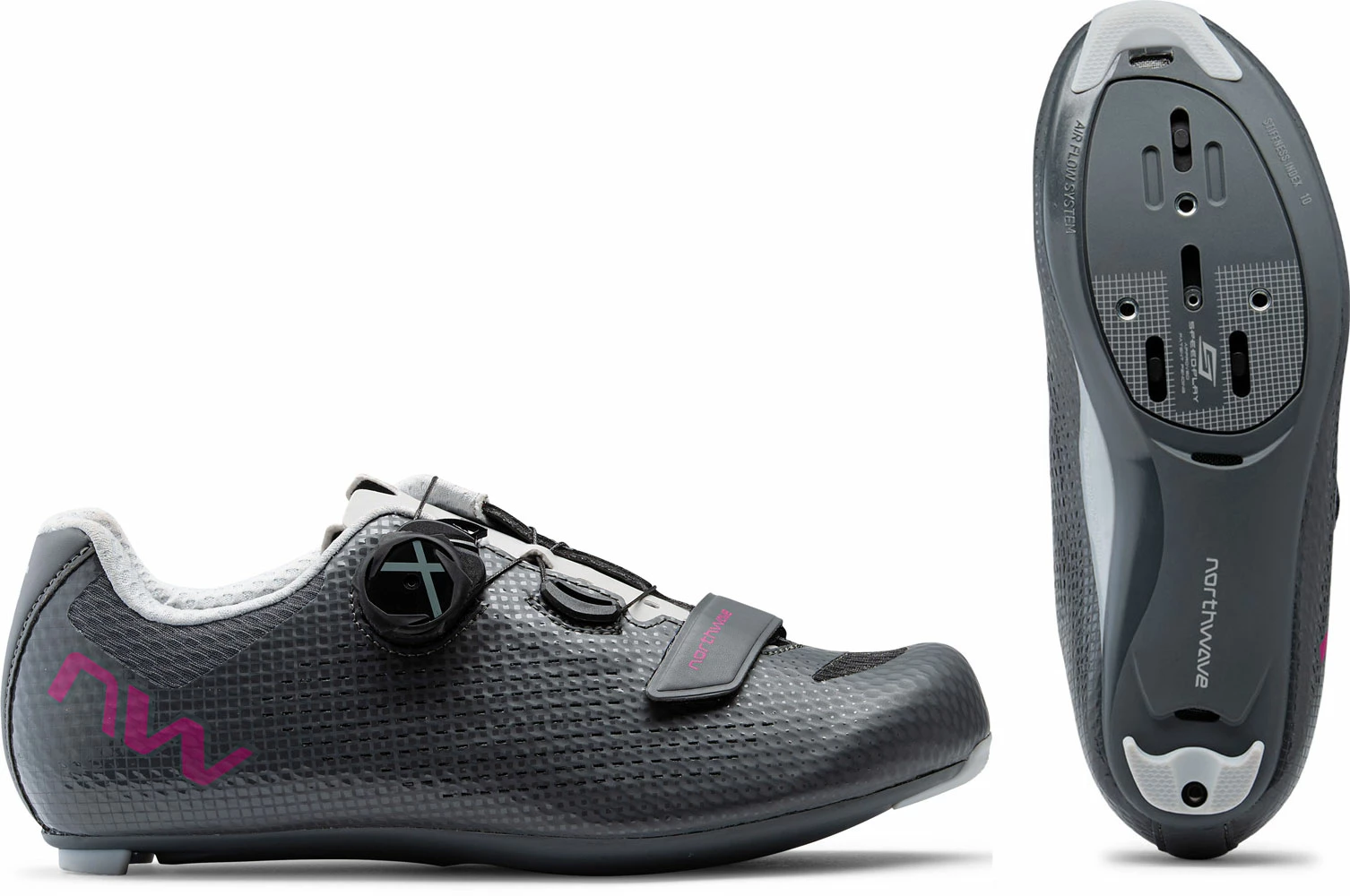 La Storm 2 WMN est dotée d’une semelle Morph 10 AAS avec un indice de rigidité de 12, d’un Adaprive Arch Support® en TPU et d’une empeigne avec une construction unibody sans couture pour réduire les points de pression. La fermeture rotative SLW3 avec velcro supplémentaire permet d’ouvrir la chaussure avec un seul bouton. Le laçage asymétrique répartit la pression du dos du pied et la dirige parfaitement tout autour du pied.