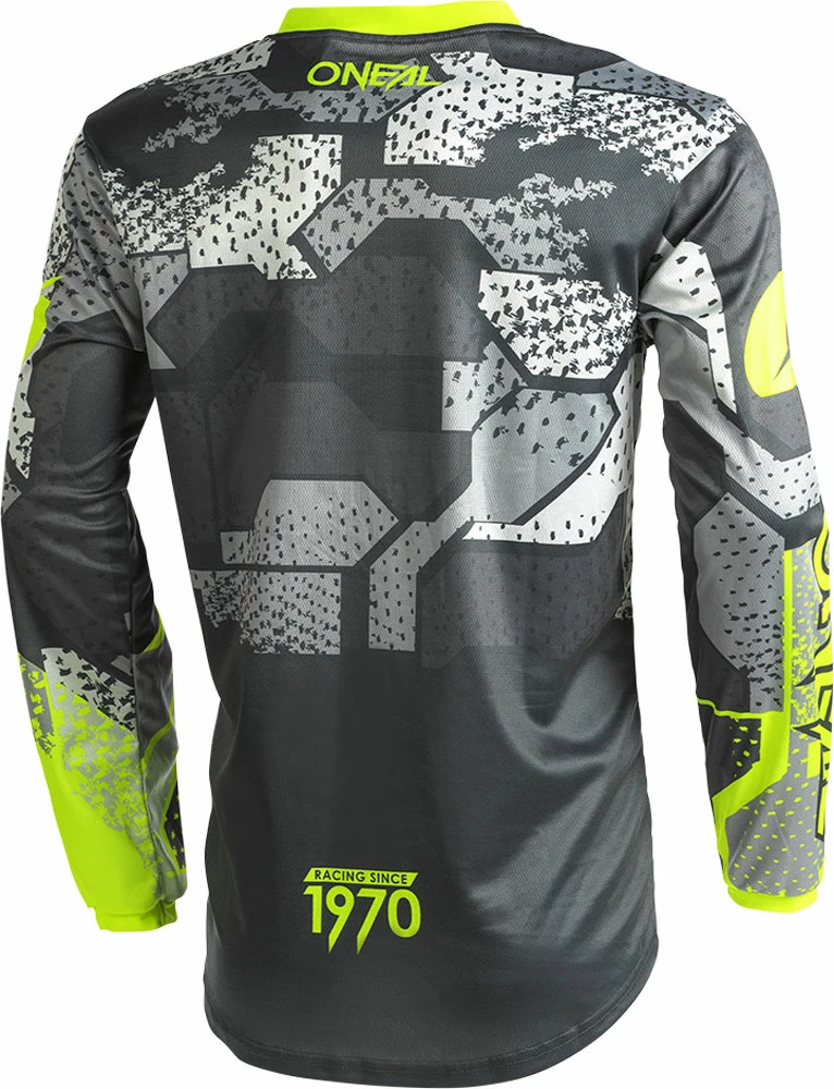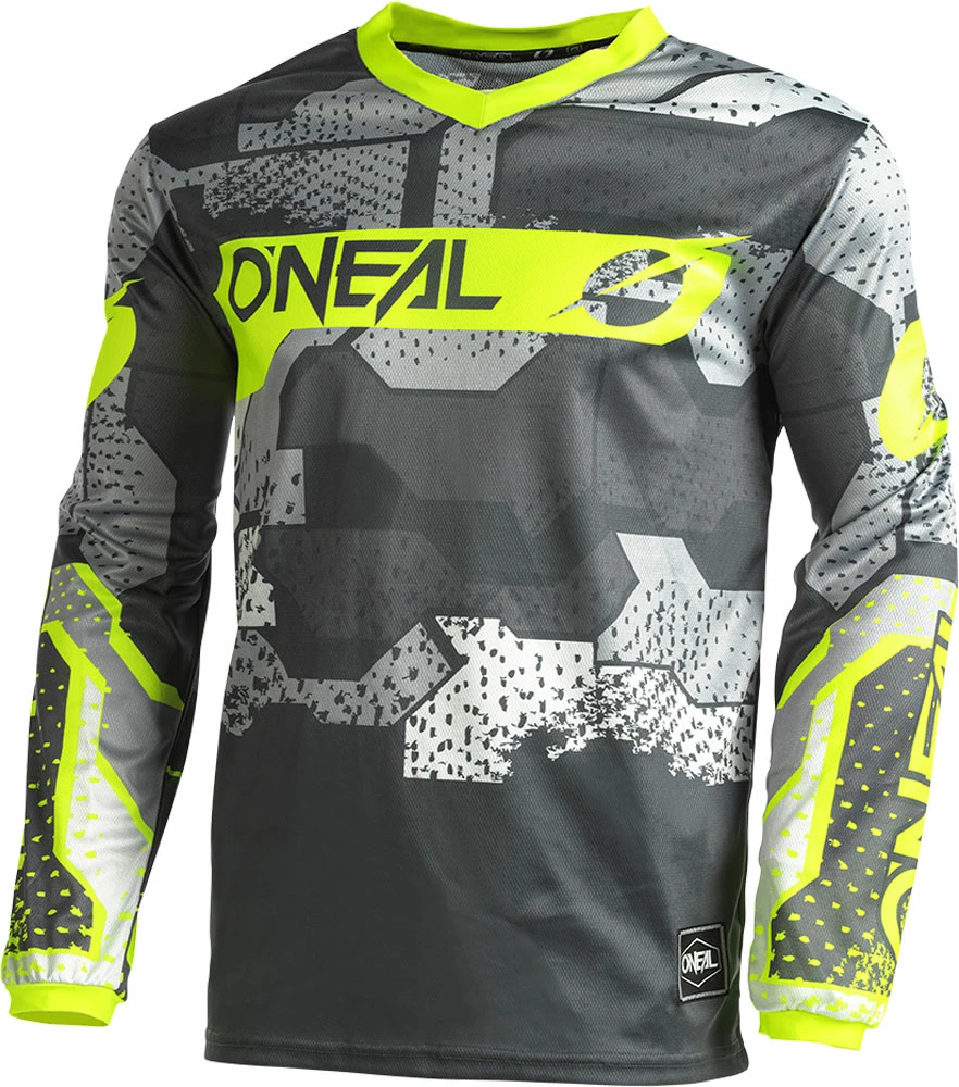 The loose Element Camo jersey by O’Neal, which offers you high freedom of movement, was made from several parts with an ergonomic cut for a perfect fit. The materials used are breathable and wick away moisture. The V-neck provides a lot of comfort and the padded elbows offer protection.