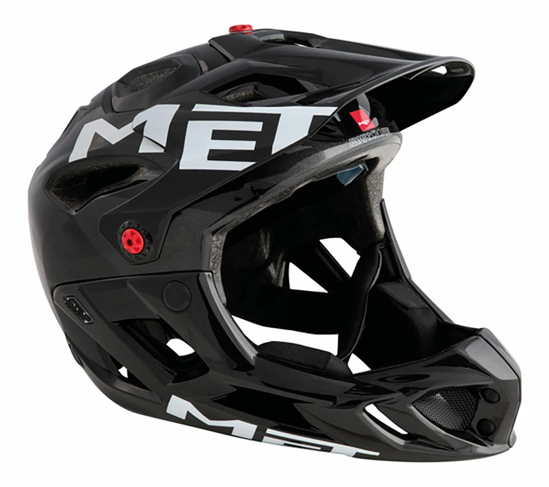Parachute is the trailblazer for a new category of helmets purpose-built for Enduro mountain biking. It combines the protection of a full face helmet with low weight, high ventilation and comfort. Riders buy a full face helmet to have more protection to their face, so it’s important to know if the chin guard has been stringently tested and passes the ASTM standard. The fact that the Parachute is ASTM certified gives the confidence to the rider that MET has designed and certified the Parachute to provide the best level of safety in its class. The Parachute is the ideal helmet for Enduro racing: weighing in at just 700g (Size M), it is extremely light and well ventilated making it comfortable to wear on climbs and safe on descents. The Parachute’s non-removable chin guard is integrated into the helmet. Thanks to its construction it is the only chin guard of its kind that exceeds ASTM testing. This technology and highly innovative design create a solid, compact and highly-ventilated chin guard. The visor’s role is to protect the face especially the eyes from branches and the sun, or against mud. Fine tune your field of vision by adjusting the anodized aluminum side screws. The visor can easily be adjusted to provide plenty of space to stow your goggles. MOPOV (My Own Point Of View) is a multi-brand compatible camera mount system that our engineers developed to securely mount an action camera onto the helmet without damaging the helmet’s shell. Safe-T Advanced, MET’s top of the line fit system, provides the best weight and comfort ratio. The contact points have a larger cradle surface increasing comfort and are also designed to keep weight low and allow perspiration at the back of the head.