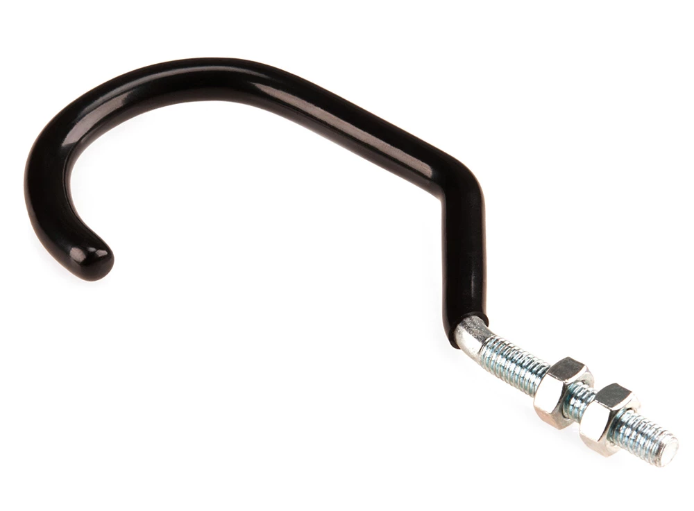 Crochet de garage surdimensionné pour suspendre les vélos et les roues. Le cintre a une largeur intérieure de 75 mm et une hauteur de 150 mm.