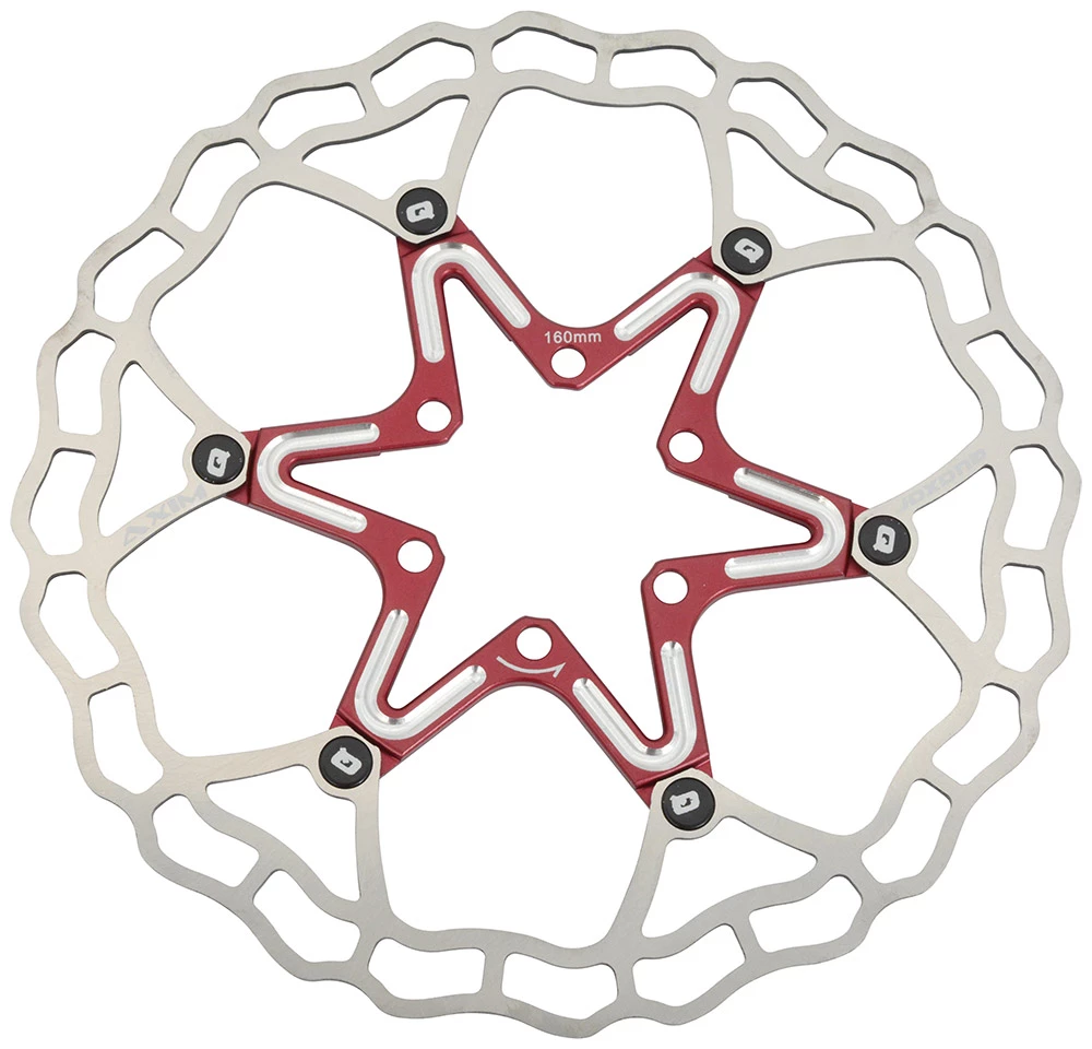 Disque de frein léger, en deux parties, à 6 trous, en acier haute performance, au design optimisé.