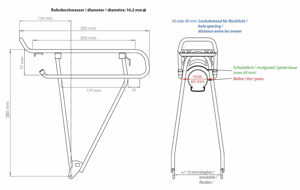 - Largeur du garde-boue : max. 65 mm