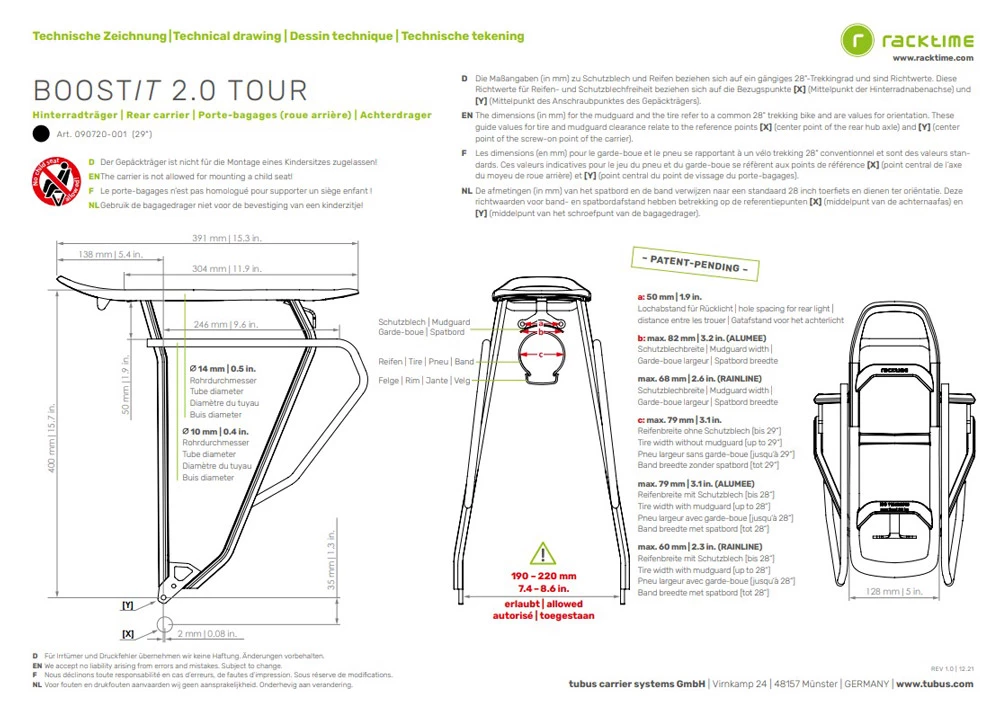 Caractéristiques du produit – Racktime BoostIT 2.0 Tour