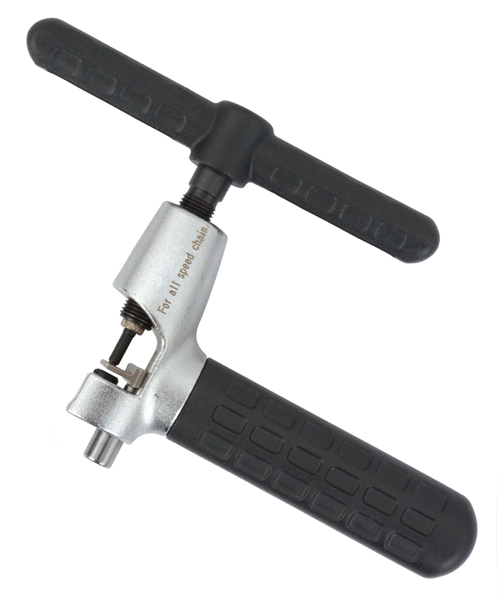 Le rivet à chaîne permet d’ouvrir ou de fermer les chaînes fermées par une tige de rivet. La construction fixe la chaîne pendant la pression, ce qui facilite l’extraction ou l’enfoncement précis de la goupille de chaîne. La force nécessaire est transmise par un mécanisme rotatif à la tige du rivet de chaîne afin de la faire sortir ou rentrer en douceur.