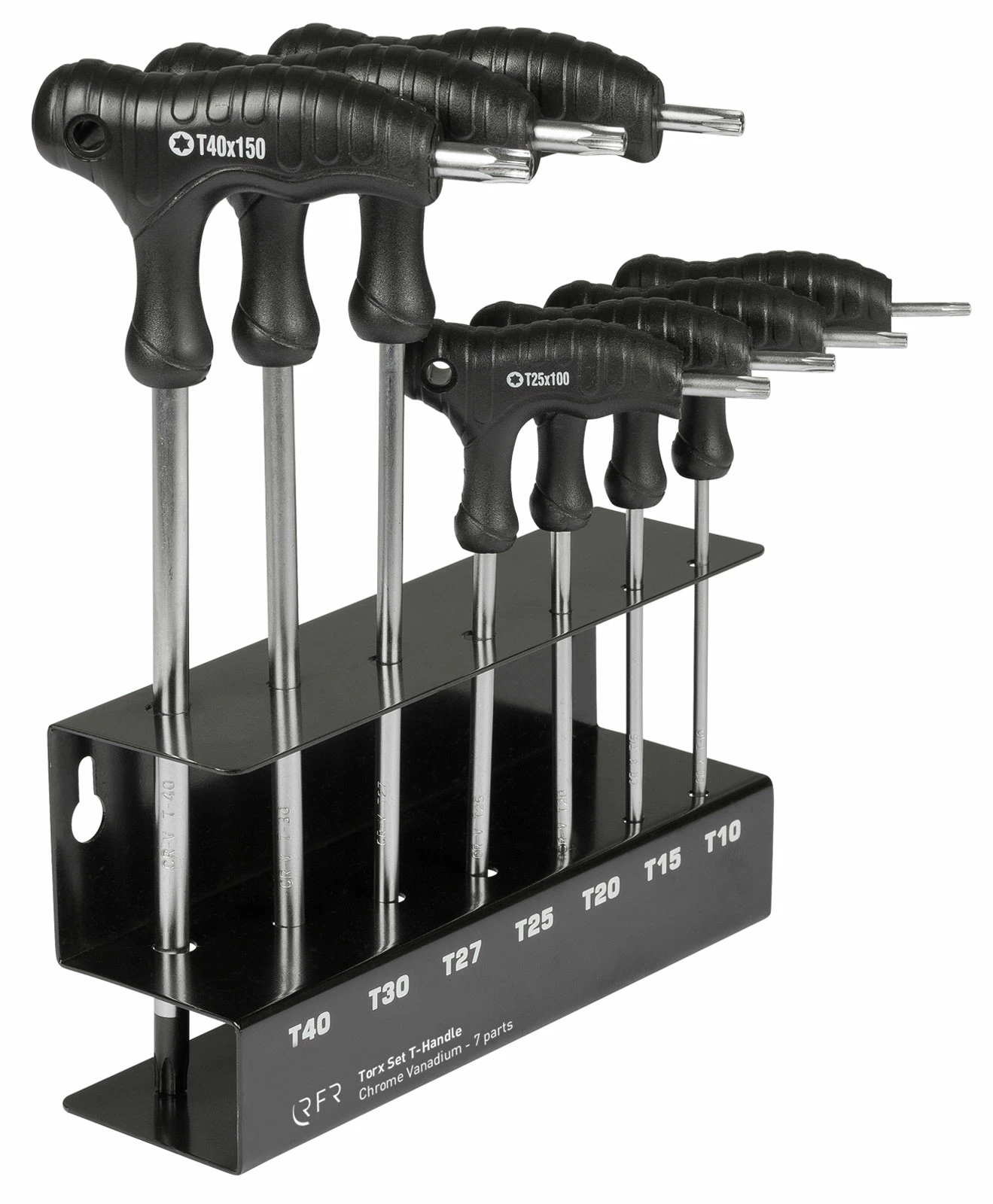 jeu de 7 clés pour vis Torx avec manche en T en thermoplastique.