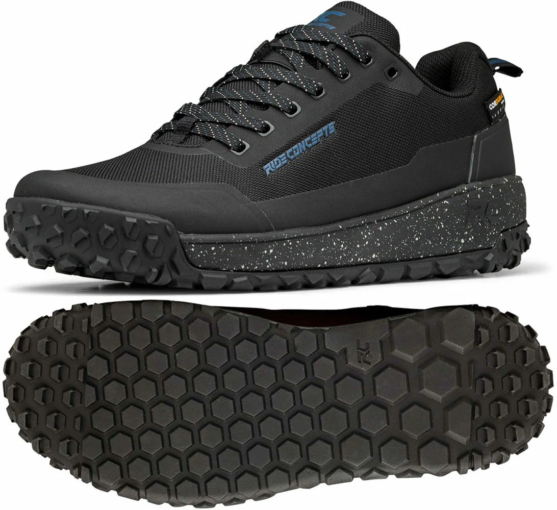 The new adaptive outsole has a supportive pedal contact surface with our MAX GRIP rubber for a secure connection with the pedal when the trail is in front of you. The compliant inverted hex sole in the toe and heel area makes it easier when hiking becomes necessary.