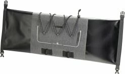 Une veste de pluie ou d‘autres choses qui doivent être rapidement accessibles peuvent être rangées à l‘extérieur sous l‘araignée à bagages. Le réflecteur à l‘avant assure une bonne visibilité. Convient aux guidons droits ou aux guidons de course à partir de 42 cm de largeur.
