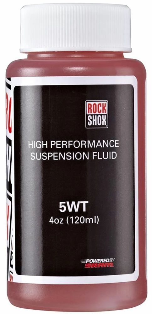Huile de fourche synthétique pour fourches et amortisseurs RockShox avec une viscosité de 5 WT.