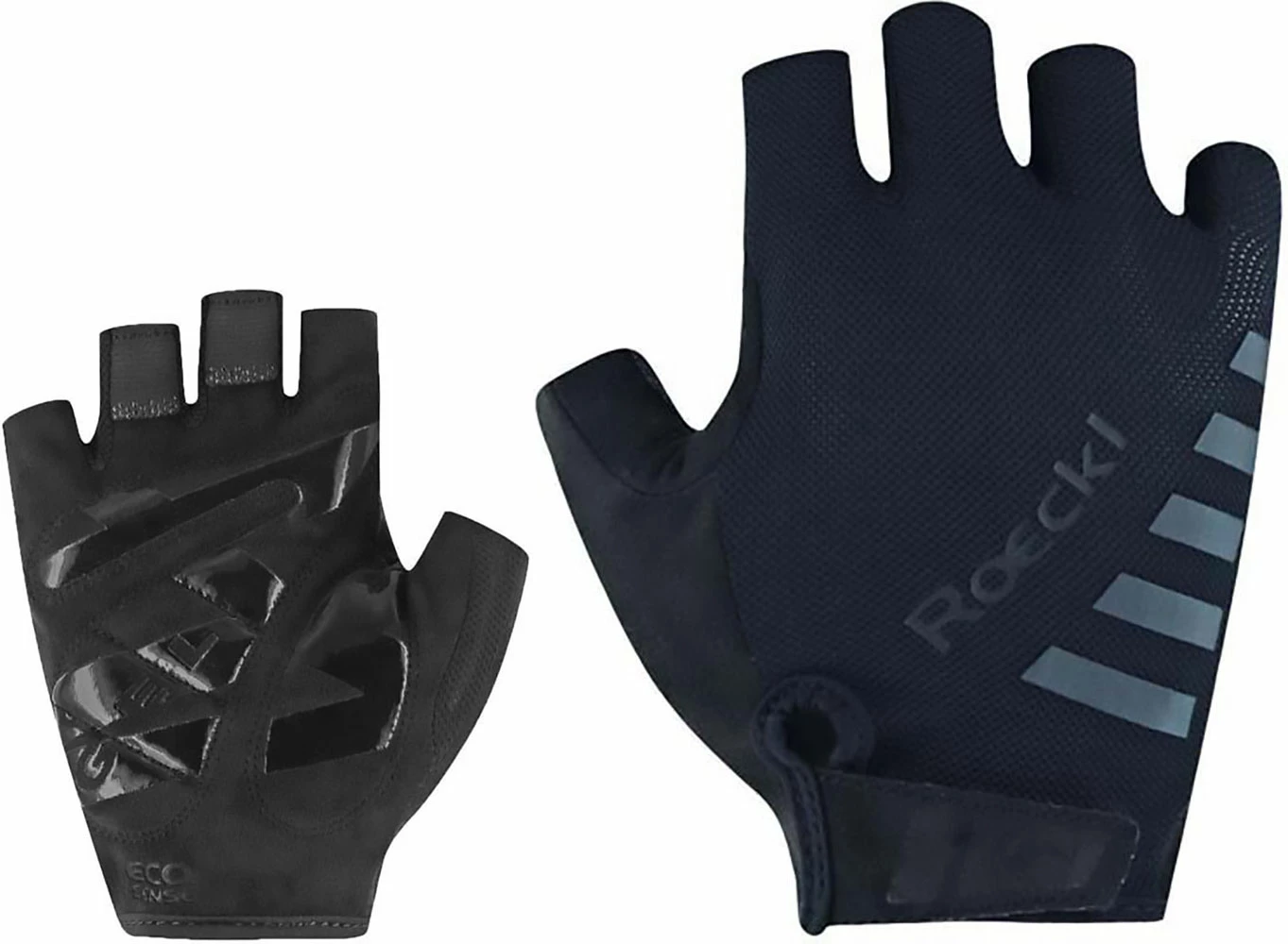 Strong performance, also in terms of comfort, cushioning and grip: the sophisticated ERGONOMIC CUT including backhand Velcro strap ensures a snug fit, a GEL TECHNOLOGY pad and the patented, seamless COMFORT-INNOVATION thumb padding from ROECKL provide optimum support for the hands and prevent premature fatigue on tour. And the stylishly shiny ALL-WEATHER-GRIP siliconization on the palm provides a non-slip and thus secure and precise grip on the handlebar, whether in wet or dry conditions. High-quality tapes and a reflective ROECKL logo add the finishing touches to the IGURA’s classy yet sporty design.