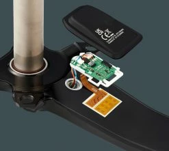 Le “cerveau” de l’appareil de mesure de la puissance se trouve à l’intérieur du corps de la manivelle d’entraînement Dura Ace (l’araignée) et les jauges de contrainte se trouvent à l’intérieur des bras de la manivelle pour mesurer la puissance des jambes gauche et droite. Le cerveau est discret et compact, offrant un système qui est l’un des plus légers et des plus propres du marché. Comme le capteur de puissance est relié à l’araignée, les plateaux de chaîne peuvent être facilement changés sans affecter la précision du capteur de puissance. La vérification du système et le téléchargement du micrologiciel peuvent également être effectués par votre téléphone intelligent ou votre tablette PC grâce à une connexion Bluetooth (E-TUBE). Une batterie rechargeable intégrée alimente l’appareil. Celle-ci peut être chargée à l’aide d’un petit adaptateur magnétique sans qu’il soit nécessaire de retirer les couvercles ou les boîtiers