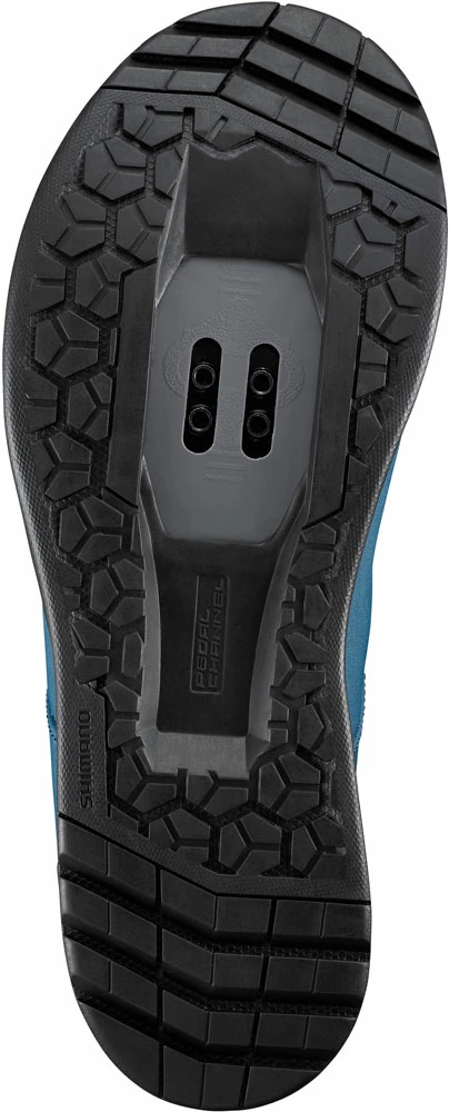 - SHIMANO rubber outsole with toe and heel tread improves stability when clicked in and when walking