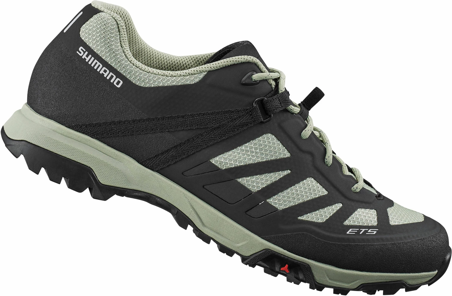 Ces nouvelles chaussures de vélo électrique de Shimano ont été équipées d’une plaque de semelle intermédiaire semi-rigide pour une transmission efficace de la force sur la pédale. Des rainures transversales adaptatives dans la semelle ainsi qu’un profil de bloc spécial dans la zone des orteils et du talon assurent l’adhérence nécessaire.