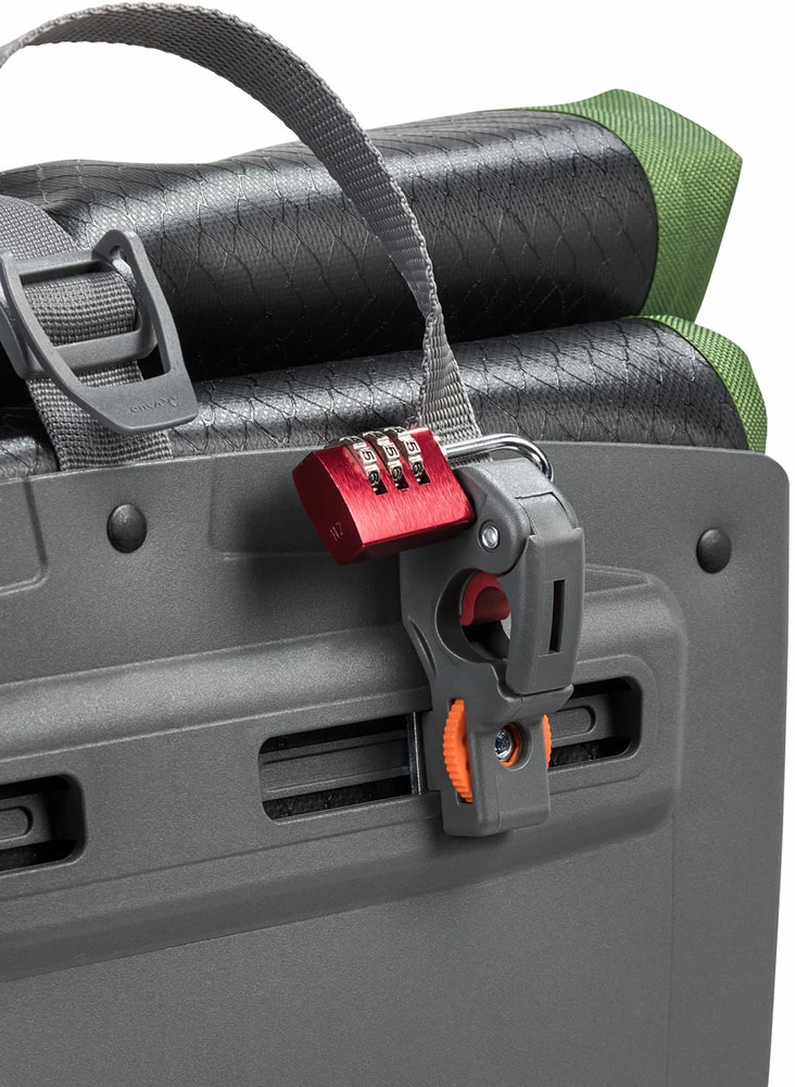 Avec une fermeture à enroulement qui vous permet de personnaliser la taille du sac et de le sceller pour qu’il soit étanche. Une poche intérieure supplémentaire permet de ranger facilement les objets séparément. Le sac se fixe en toute sécurité sur le côté droit ou gauche du porte-bagages arrière grâce au système QMR 2.0, qui permet également un ajustement facile et un montage et démontage rapide. Avec un cadenas de vélo, il peut être directement verrouillé sur le crochet QMR. Les éléments réfléchissants assurent une grande visibilité dans la circulation et dans des conditions de faible luminosité. Peut être utilisé avec les sacs d’accessoires pratiques : Toolbag Back, Sortyour Back, Addita Bag.