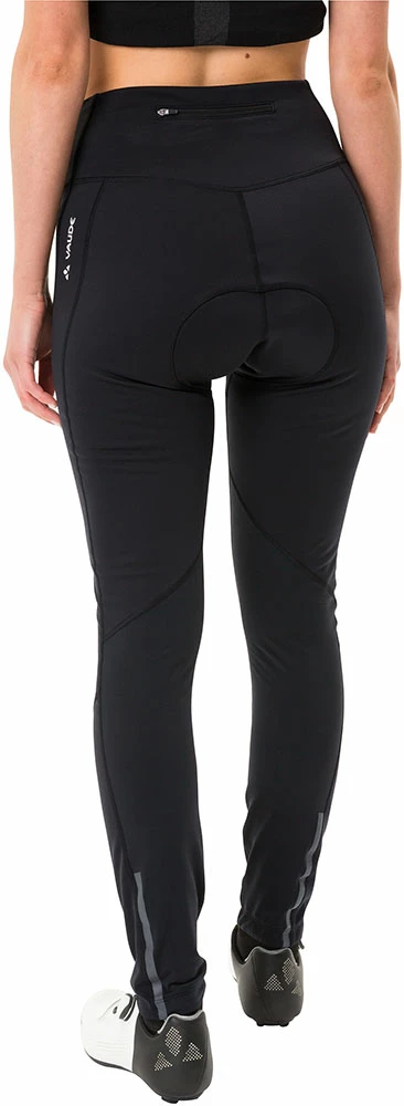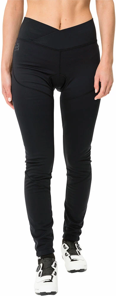 The ergonomic Slim Fit with pre-shaped knees and the Advanced Cycling Green seat pad offer pleasant comfort even on longer winter tours. The extra flat seams prevent skin irritations. The waistband is cut wide and comfortable at the front like fitness tights and offers a zipper pocket at the back for smartphone, keys or handkerchiefs. The outer and inner material are made from 100% recycled polyester. The softshell material is full-length at the front; stretch material has been used on the back from the knee area for more comfort and freedom of movement. Decorative reflective elements can be found at the end of the legs. The tights combine well with the Posta Softshell Jacket and, like the jacket, are certified according to the highest environmental standard bluesign®. The VAUDE Green Shape label stands for an environmentally friendly, functional product made from sustainable materials.