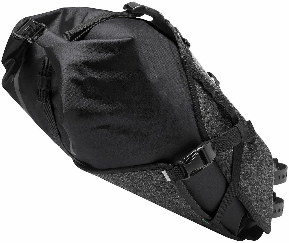 Le volume de 10 litres facile d’accès avec fermeture à enroulement est parfait pour ranger vos affaires. Le système de fixation du sac à dos, au design fin, aide le sac à garder sa forme et sert de protection contre les éclaboussures pour vous garder également au sec. Un imperméable ou une lampe de poche peuvent être attachés à la sangle supérieure pour un accès rapide. Le support de montage est fixé à la tige de la selle et maintenu en position par une boucle de verrouillage qui passe à travers les haubans de la selle. Les impressions réfléchissantes à l’arrière du support de montage et du sac lui-même augmentent votre sécurité dans l’obscurité. Combiné avec le Trailfront pour votre sac de couchage ou votre tente, vous pouvez explorer à votre guise. Le Trailsaddle n’est pas seulement un compagnon pratique pour les randonnées à vélo. Il contribue également à la protection de l’environnement, puisque le système de fixation et le sac à dos sont fabriqués à partir de matériaux 100 % recyclés.