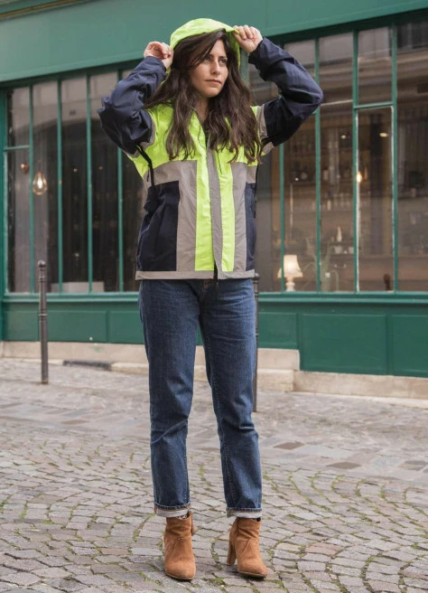 Une veste bien taillée qui permet de rester au sec et en sécurité ! Les bandes réfléchissantes sont très efficaces et la veste est généralement bien pensée avec des aérations, des poches diverses et la place pour un téléphone sur la manche. C’est le genre de produit malin qu’on adore !