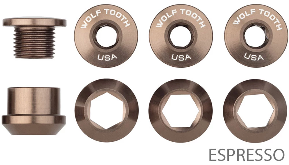 Vis de plateau avec écrou de Wolf Tooth pour une performance maximale, disponible en différentes couleurs anodisées.