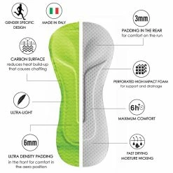 La peau de chamois cycliste PRO CARBON offre 8 heures et plus de confort dans le coussin de course le plus avancé techniquement. Elle possède une forme ergonomique unique, spécifique à chaque sexe, grâce à la technologie skyving appliquée à une combinaison de mousses. Une mousse T Novib 2.5 de nouvelle génération possède des propriétés antivibratoires innovantes qui garantissent une absorption maximale des chocs et éliminent l’accumulation de pression dans la zone pubienne. Le tissu de surface en carbone en zig-zag permet à la peau de chamois de répartir uniformément la chaleur corporelle et réduit les risques de frottement à l’origine des irritations.